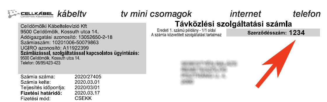 Szerződés számát megtalálja a számláján, a piros nyíl mutatja a helyét!